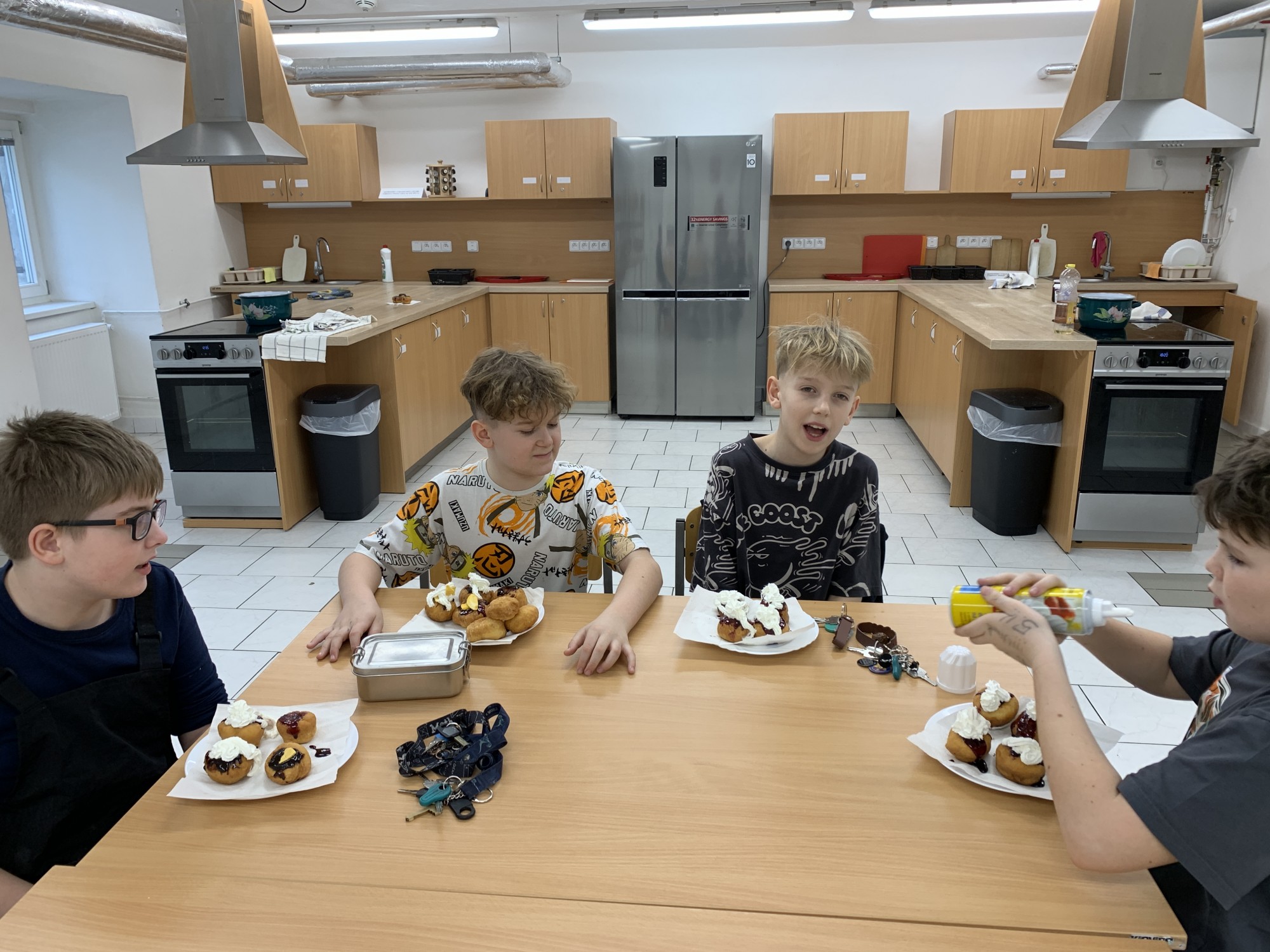 Vůně se linula školou a úsměvy ještě větší než samotné koblihy. I v menším počtu jsme si práci náramně užili a dokázali, že když jde o koblihy, žádné oslabení nás nezastaví!
