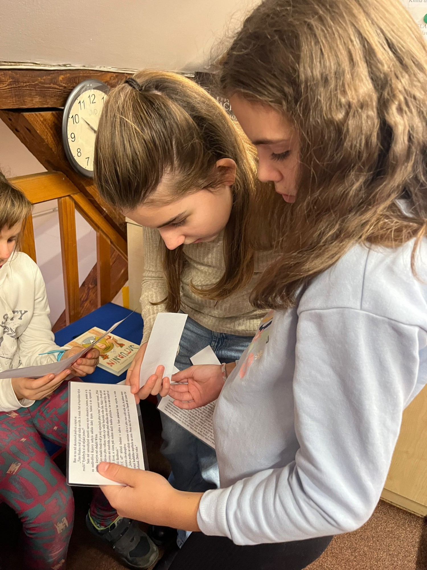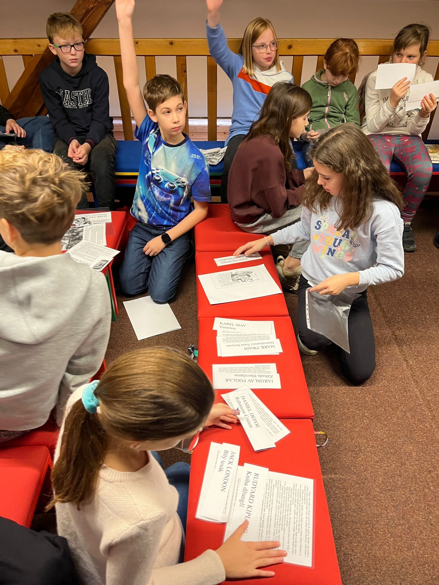 Pro žáky byla připravena zábavná aktivita, ve které měli za úkol přiřadit kartičky se jménem autora a názvem knihy k úryvku textu. Podle něj měli poznat, o jaké dílo se jedná. Úkol je bavil, zapojili se s nadšením a mnozí objevili nové knihy, které si po skončení programu odnesli domů.