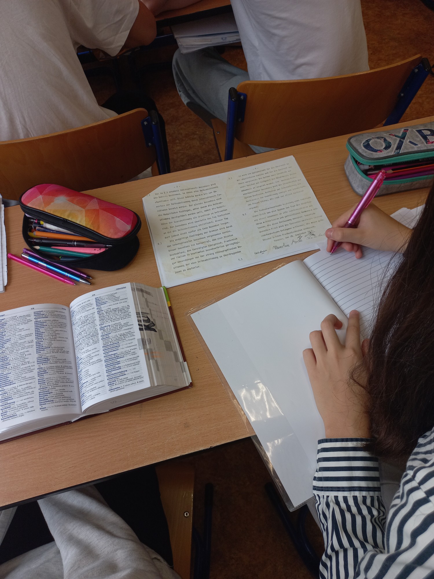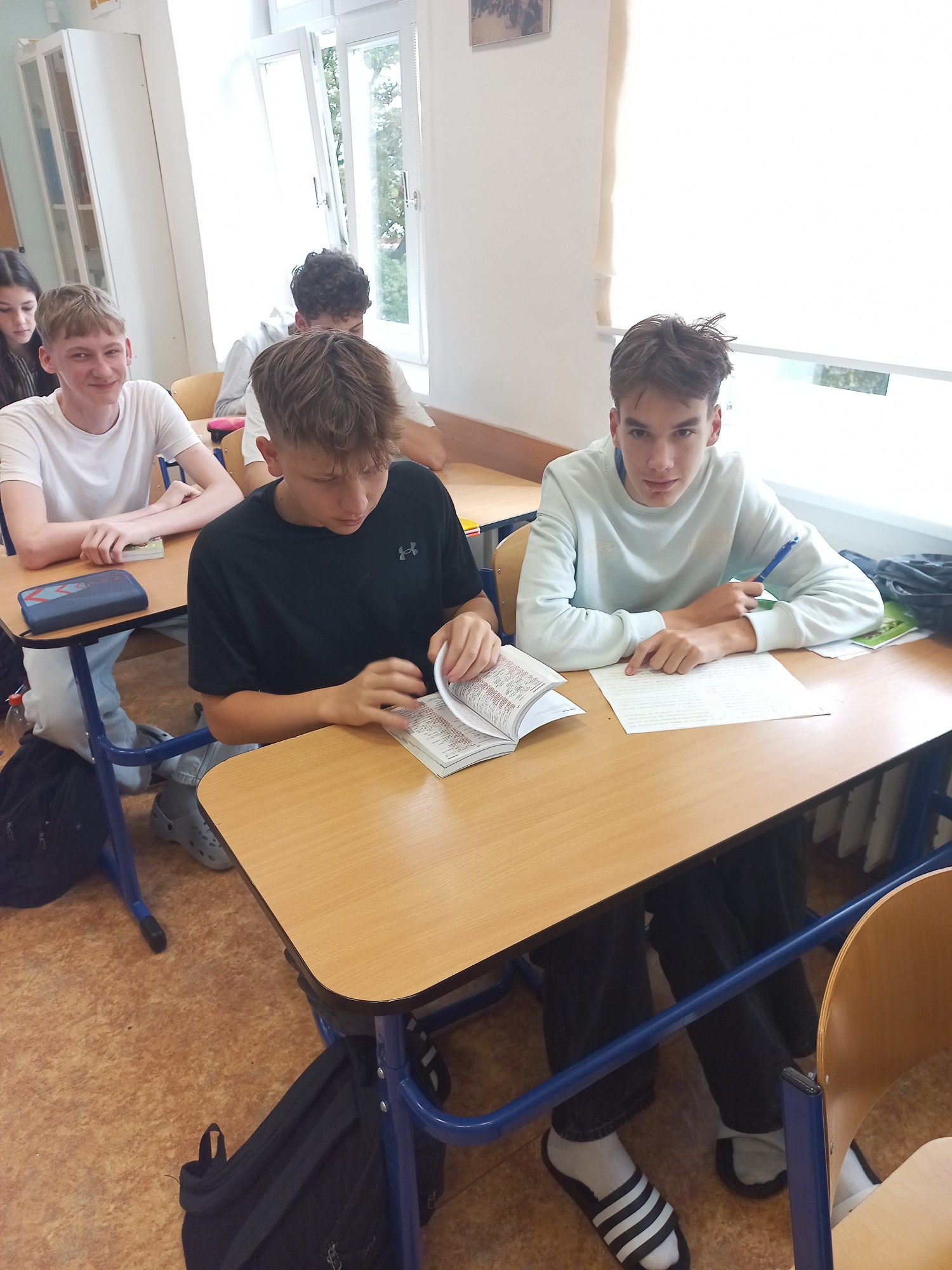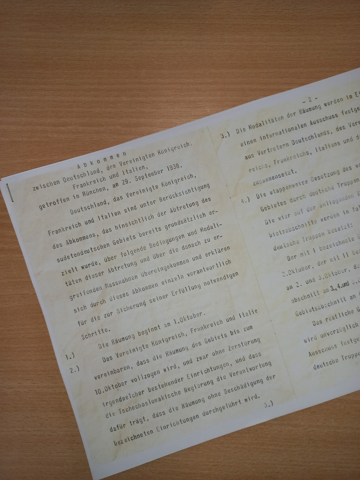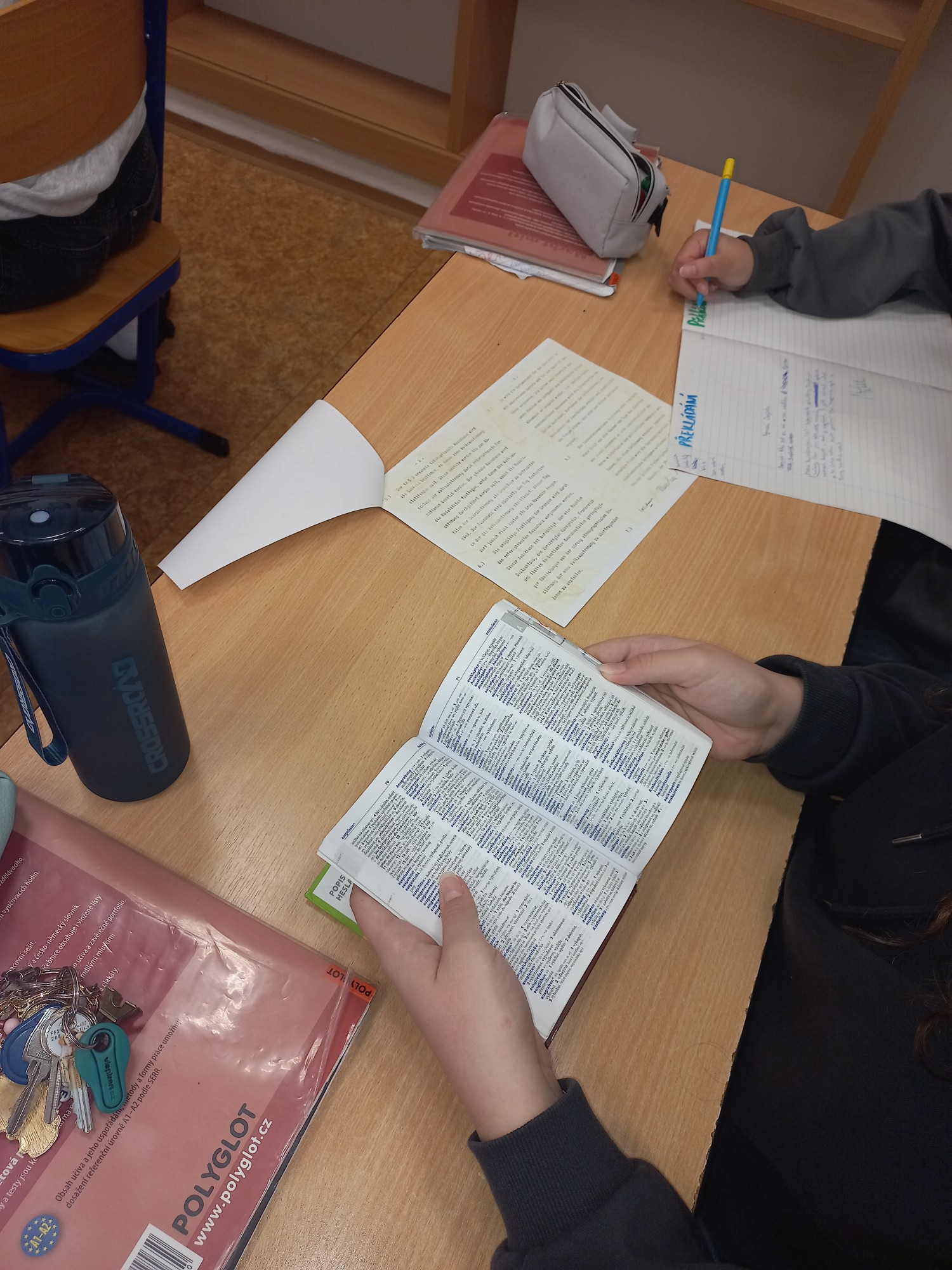 V hodině němčiny jsme si připomněli 87. výročí podpisu Mnichovské dohody trochu netradičně – pustili jsme se do jejího překladu. Deváťáci nejdřív pracovali ve dvojicích, kde se snažili rozluštit německý text. Potom dali hlavy dohromady ve skupinách, porovnali své výsledky a nakonec jsme si část dohody společně přečetli. Byla to zajímavá zkušenost – nejen jazyková, ale i historická.