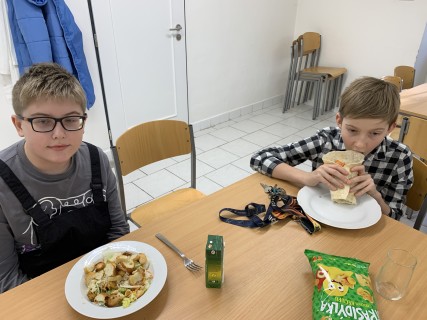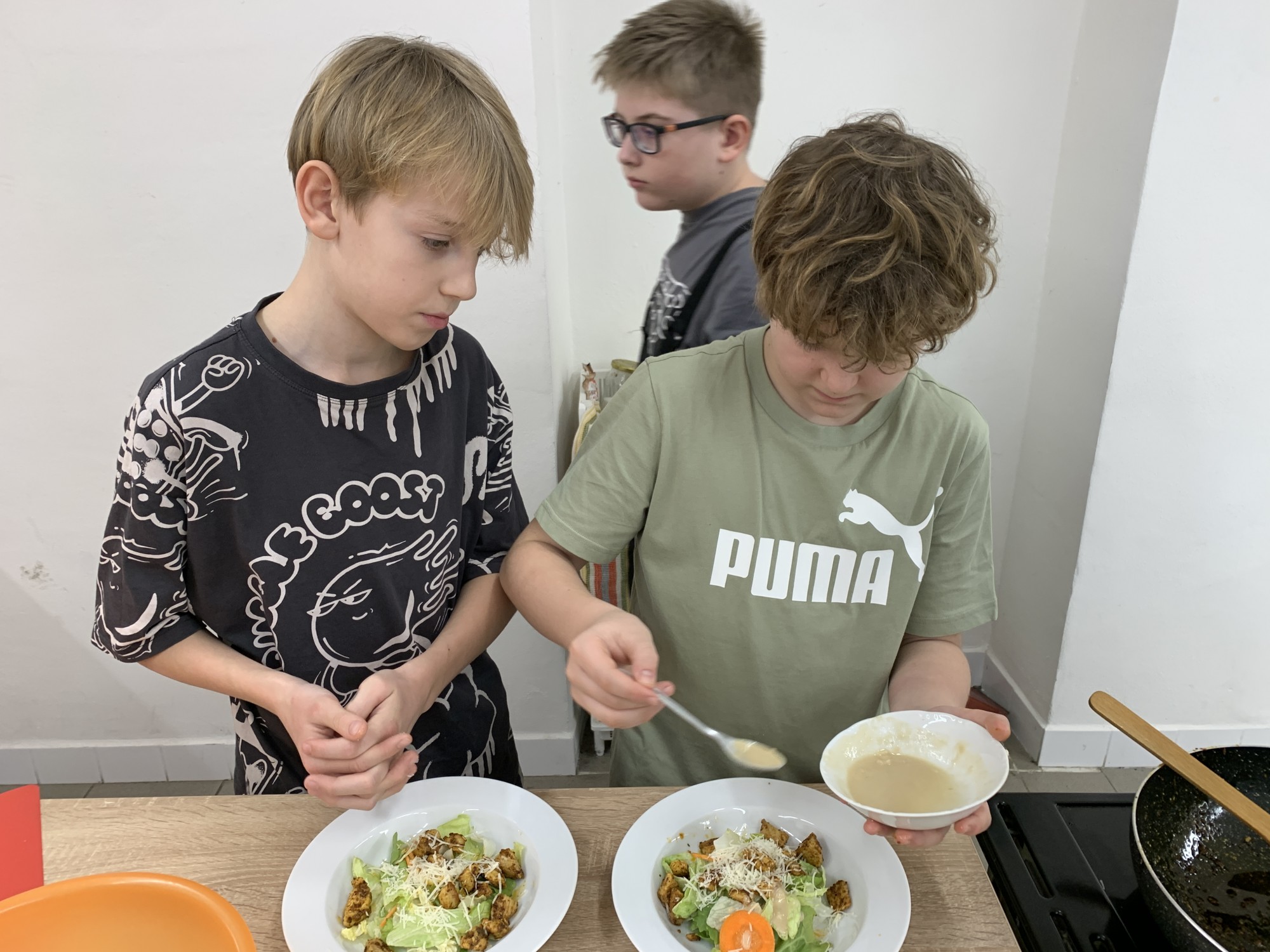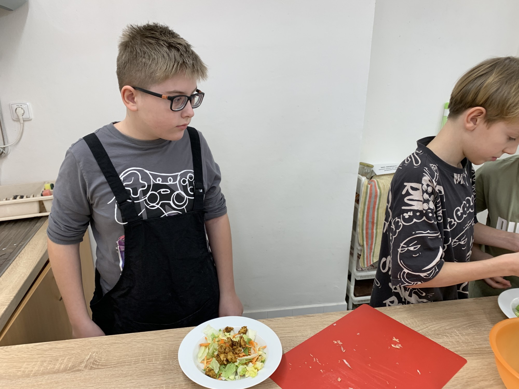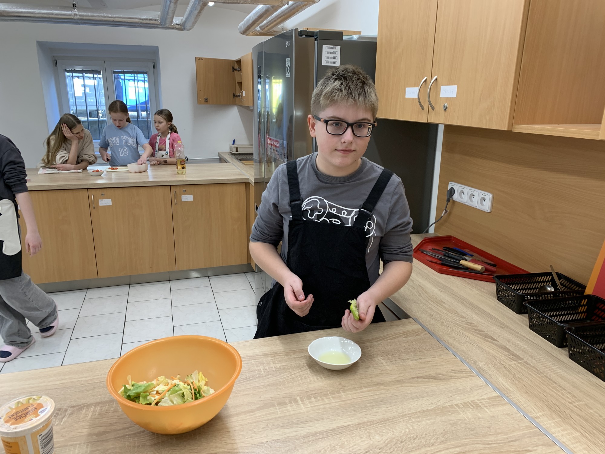 Kroužek Malý Kuchtík opět ukázal, že vaření je radost! Dnes žáci pracovali ve dvou týmech a připravili dvě oblíbené chuťovky – tortilly a Caesar salát. Vedli si znamenitě a hlavně si všichni moc pochutnali.