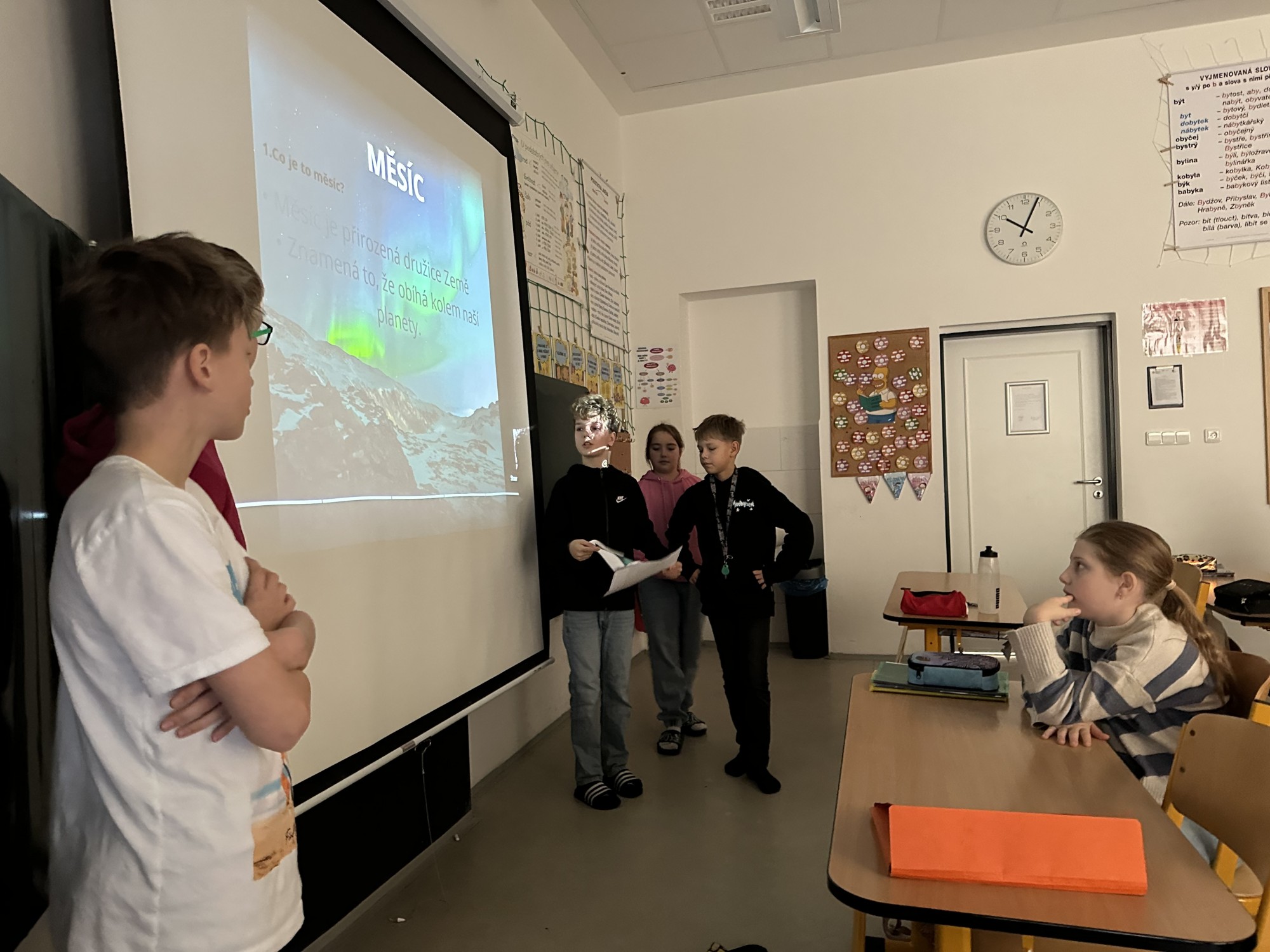 Žáci třídy 5.B se pustili do tematického projektu Vesmír, který propojil badatelskou práci, spolupráci ve skupinách i kreativní tvoření.
