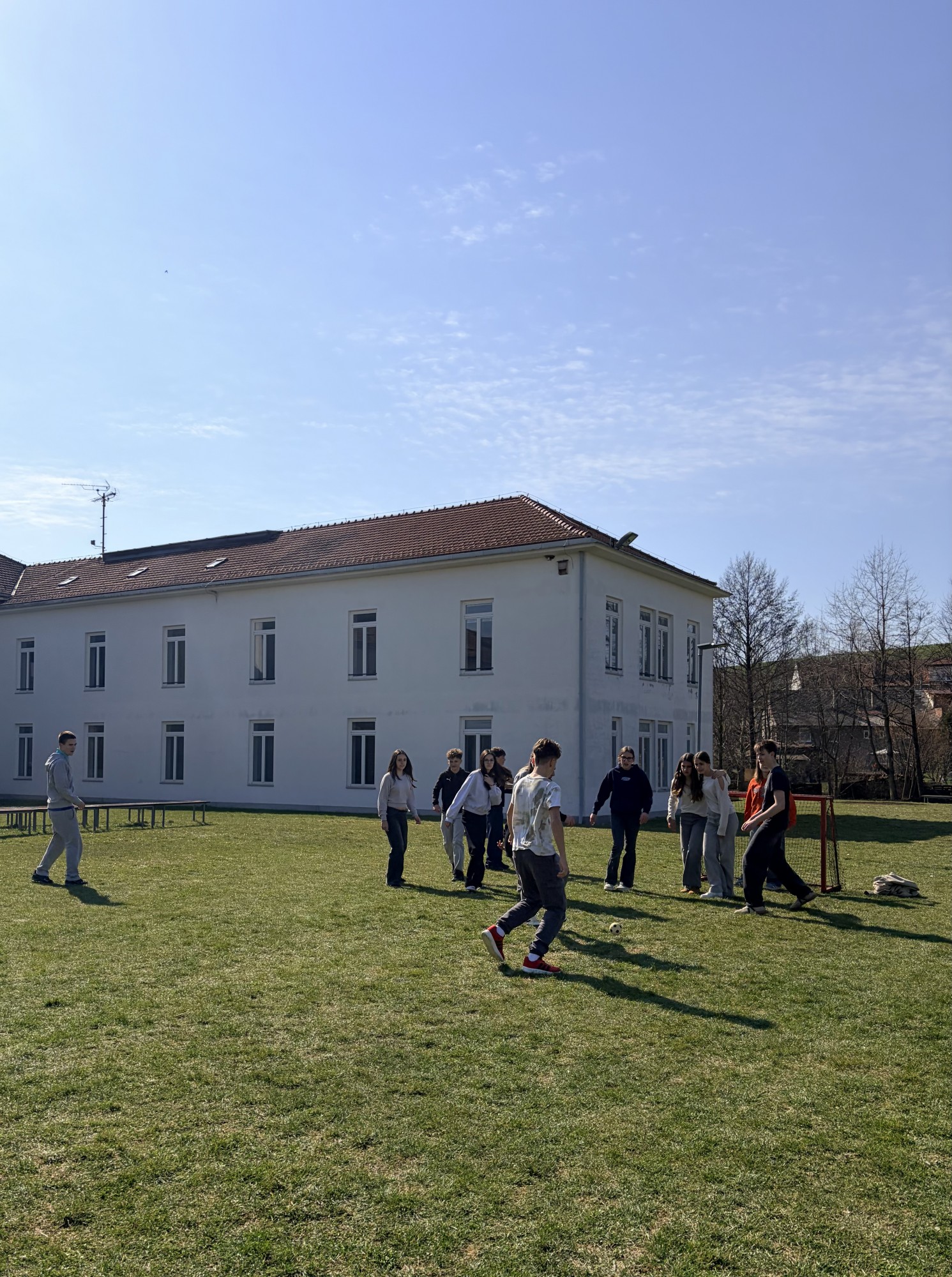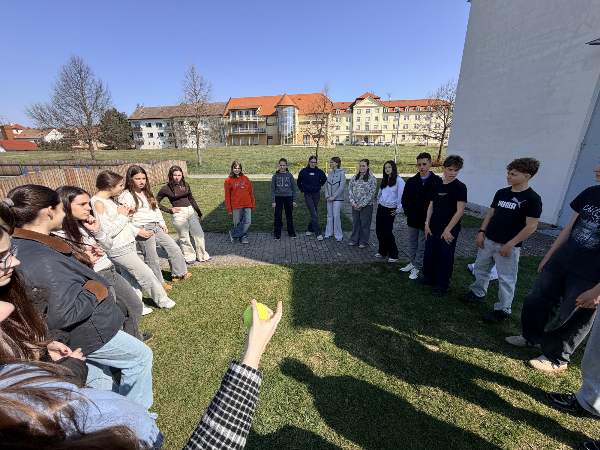 Poté přišla na řadu zábava – sportovní a seznamovací aktivity. Učitelé si dali kávu a jen sledovali, jak to mezi žáky funguje úplně samo. Největší úspěch měl společný fotbal, u kterého se bavili opravdu všichni. Prostor zbyl také na seznamovací aktivitu v kruhu.