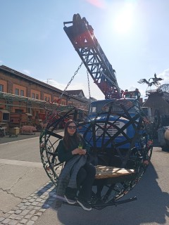 Kolem poledne jsme se přesunuli do Starého Města, do KOVOZOO. Nejdřív jsme se posilnili obědem – kuřecí plátek s hranolkami byl jasná volba.