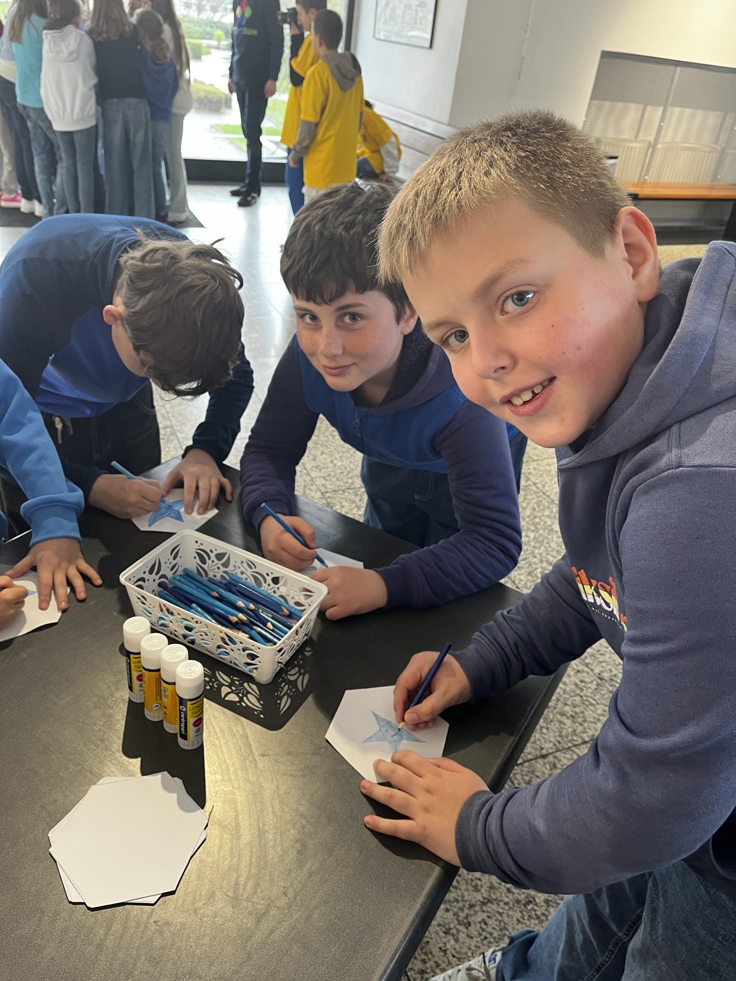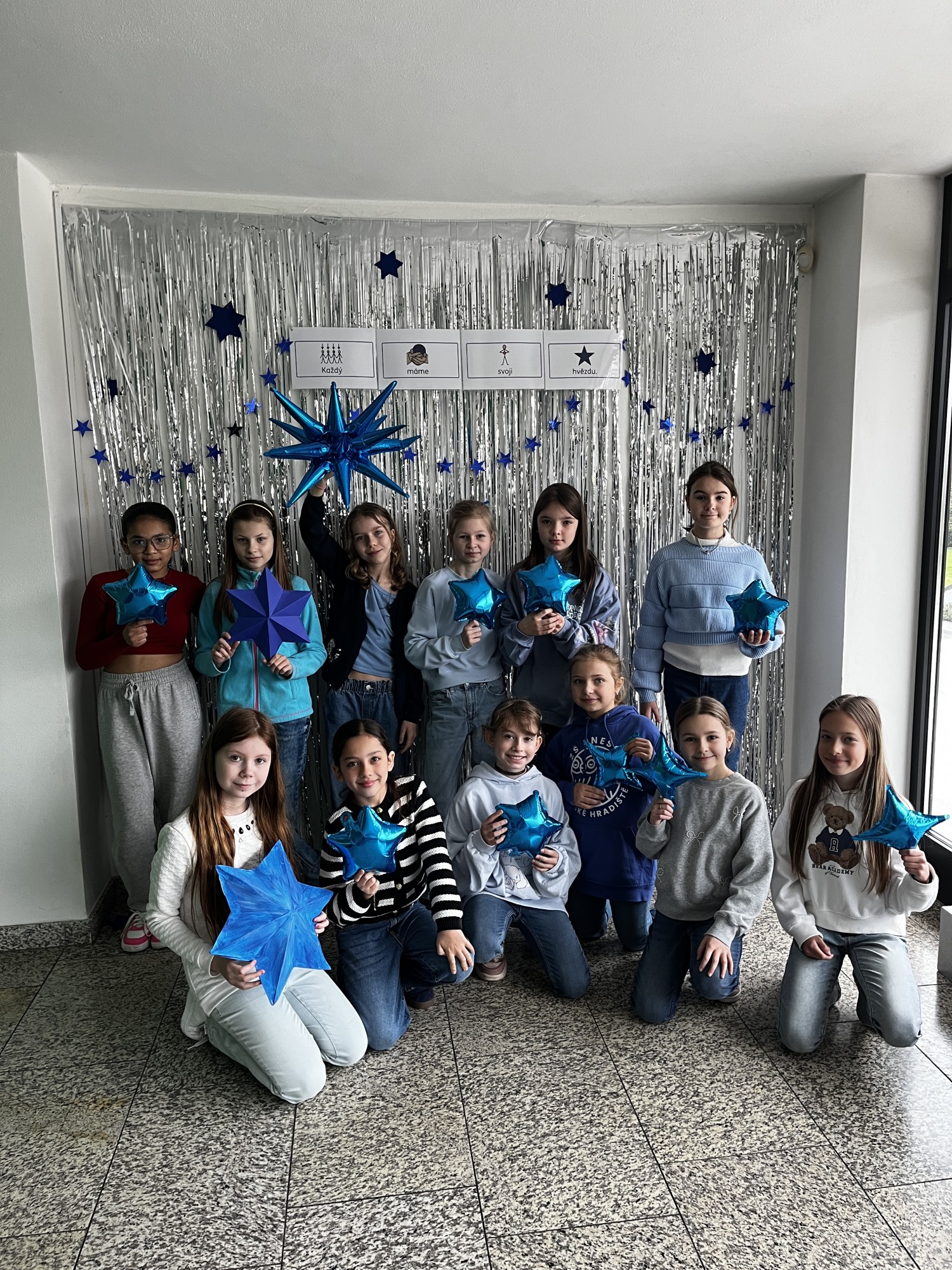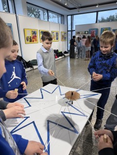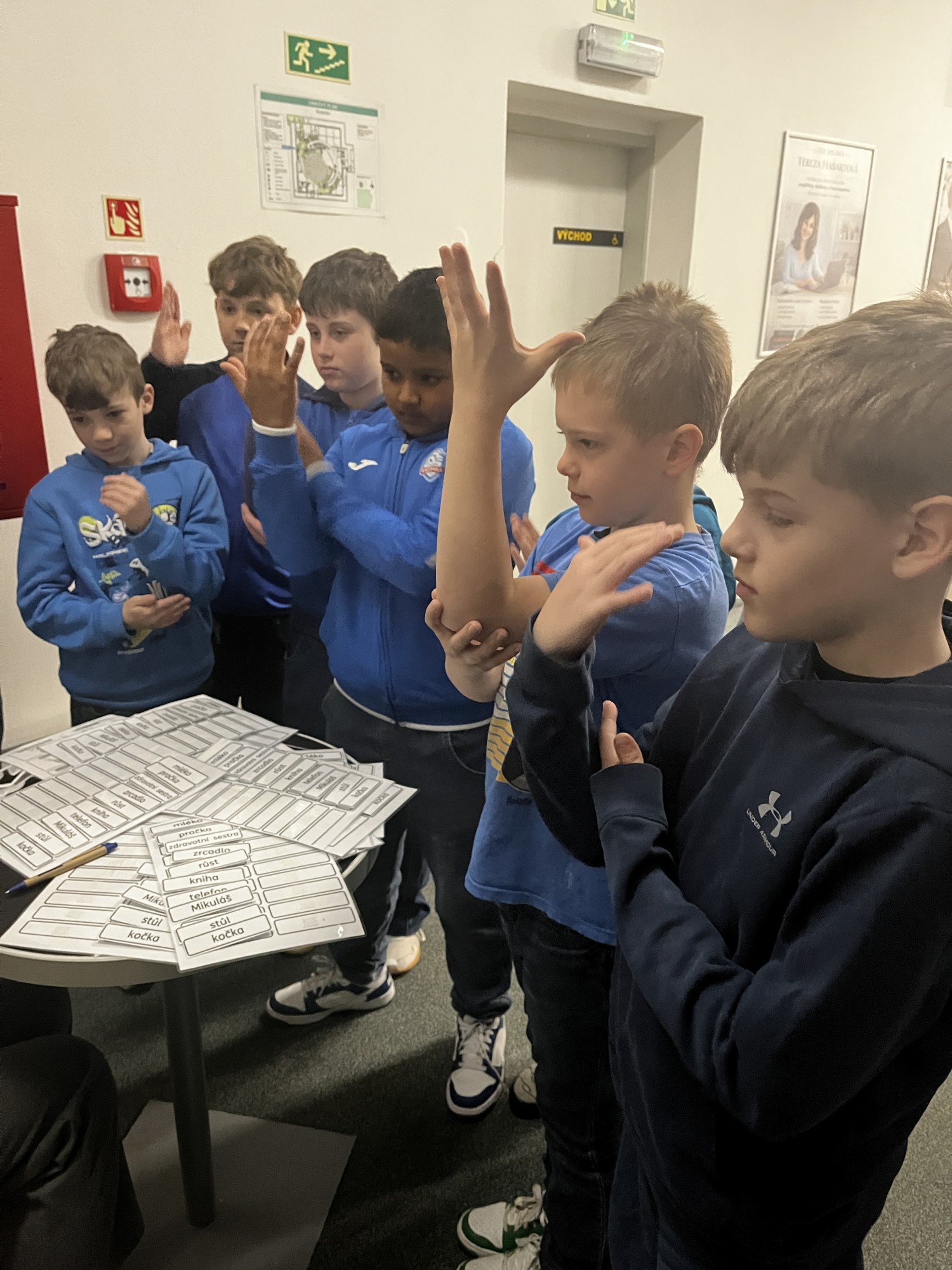 Na dalších stanovištích si žáci vyzkoušeli aktivity zaměřené na komunikaci, například gesto a slovo, kde si uvědomili, jak náročné může být dorozumívání bez běžných komunikačních prostředků. Velmi zajímavé byly i úkoly jako gordický uzel, kreslící bludiště, skládání puzzle nebo diktát písmen na záda, které rozvíjely spolupráci, trpělivost a schopnost soustředění.