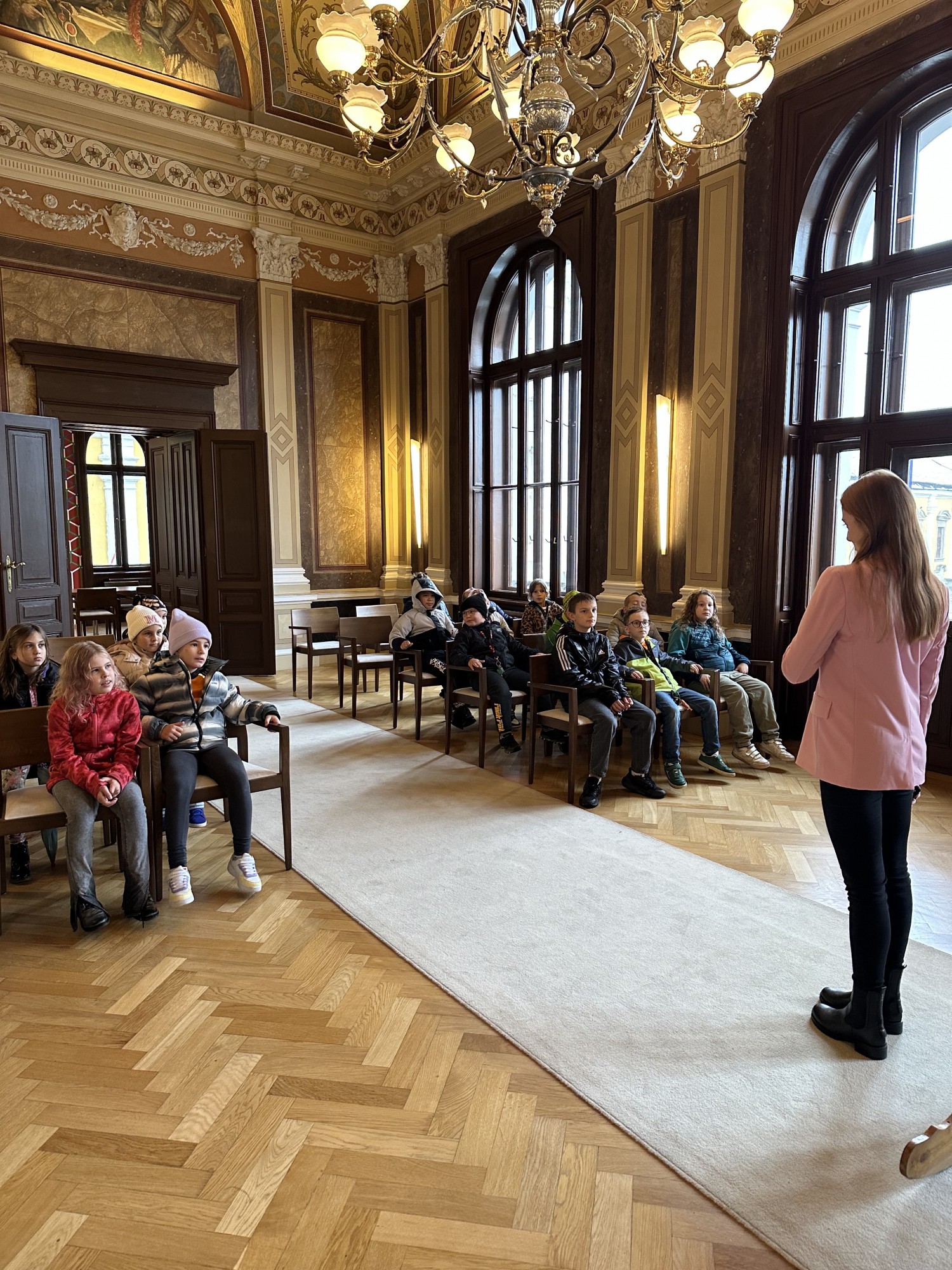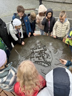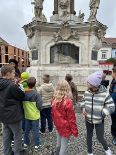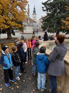 Ve středu se žáci z třetích ročníků vydali na komentovanou prohlídku našeho města, kde se měli možnost seznámit s jeho historií a zajímavými místy. Společně s průvodcem procházeli ulicemi a zastavovali se u významných budov, kašen a městských znaků. Žáci se dozvěděli, jaké události se odehrály v některých domech v minulosti a co znamenají symboly na městském erbu. Všímali si detailů na fasádách domů – například domovních znamení, která kdysi sloužila jako adresa, než se začala používat čísla popisná.