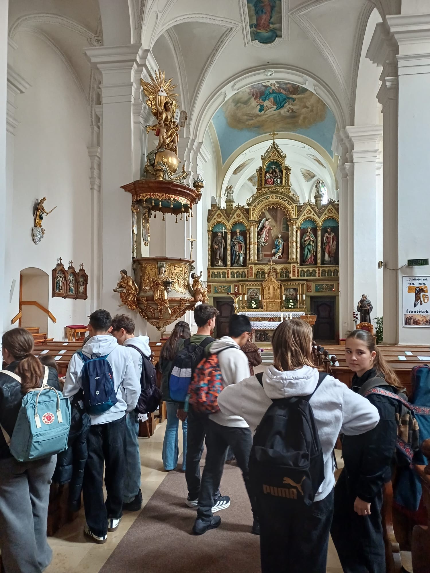 Po obědě ve školní jídelně jsme se všichni vydali do města. Procházka centrem nabídla pohled na nejvýznamnější památky i stručné seznámení s historií Uherského Hradiště. Prohlídka města byla ukončena u Slováckého muzea, kde jsme se po nabitém dni rozloučili, abychom načerpali síly na další program.