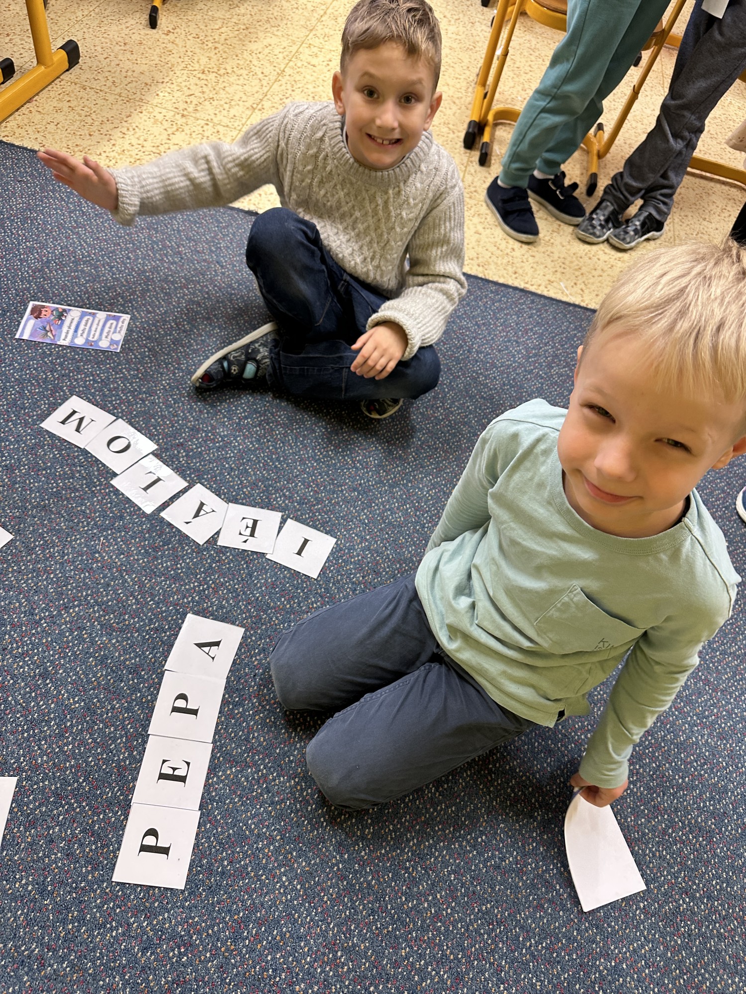 - Skládání slov z jednotlivých písmen – děti dokazovaly, že už umí písmenka spojovat do krátkých slov.