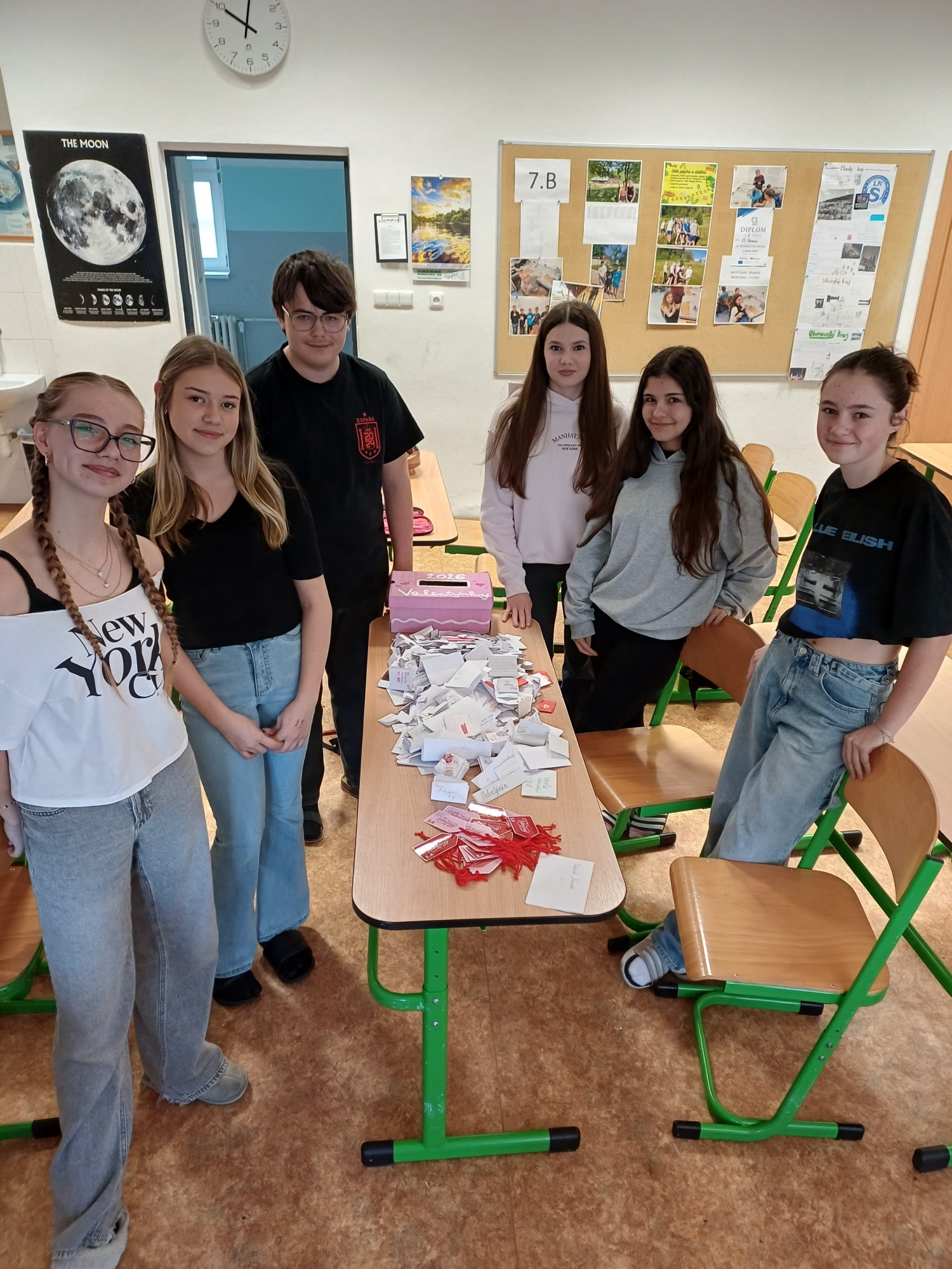 Dneska to u nás na druhém stupni vypadalo, jako by se otevřela tajná poštovní brána přímo do říše lásky. Proběhlo totiž velké valentýnské rozdávání a valentýnek bylo tolik, že by z nich šla postavit menší věž. Nebo alespoň hodně měkký polštář.