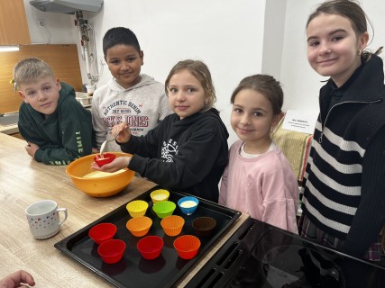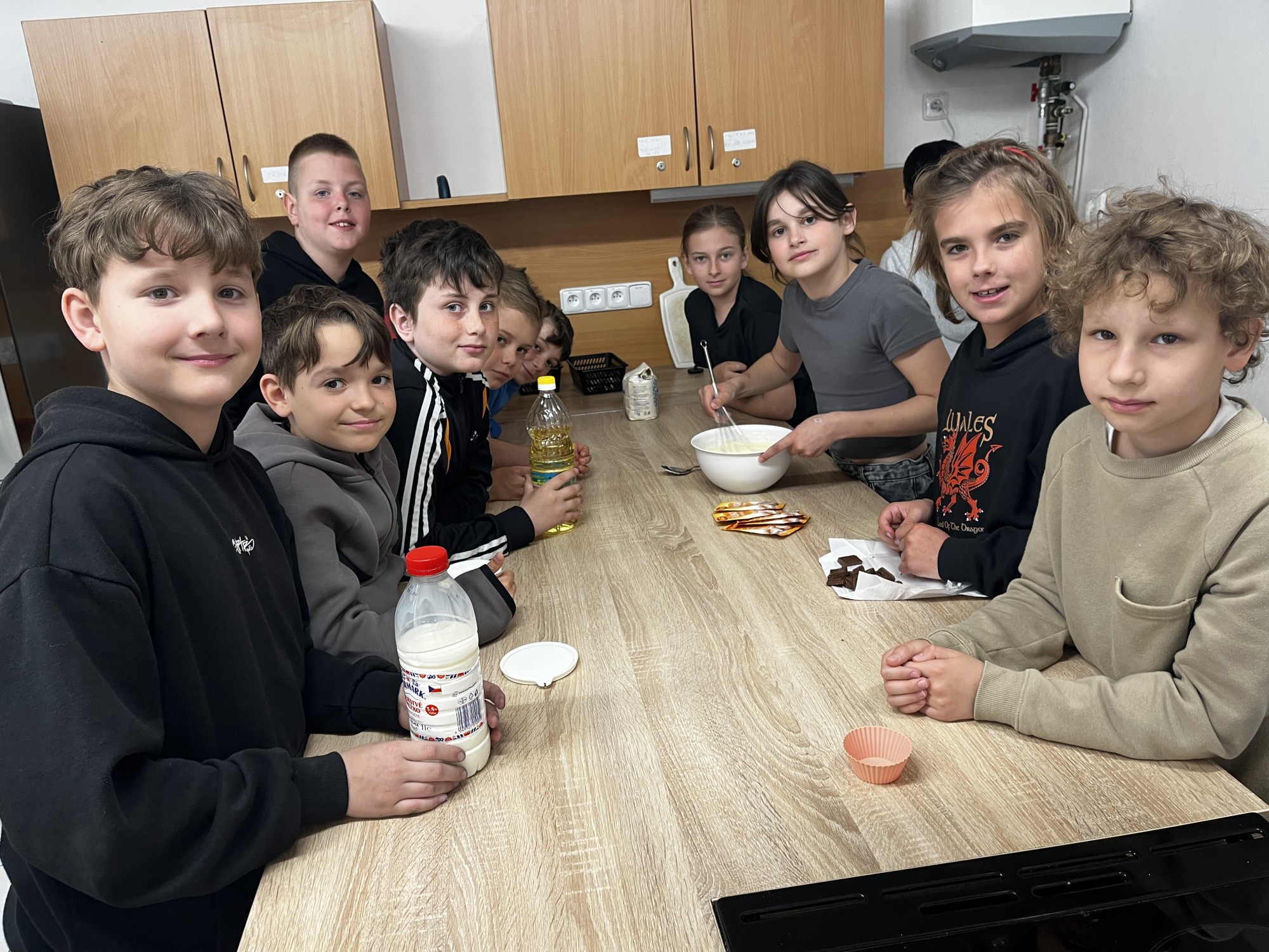 Při práci jsme přirozeně zapojili i matematiku. Procvičili jsme jednotky hmotnosti a objemu, které jsou při pečení nezbytné, a ukázali si, jak důležná je přesnost při odměřování surovin. Žáci tak viděli, že matematika má své pevné místo i v každodenním životě.