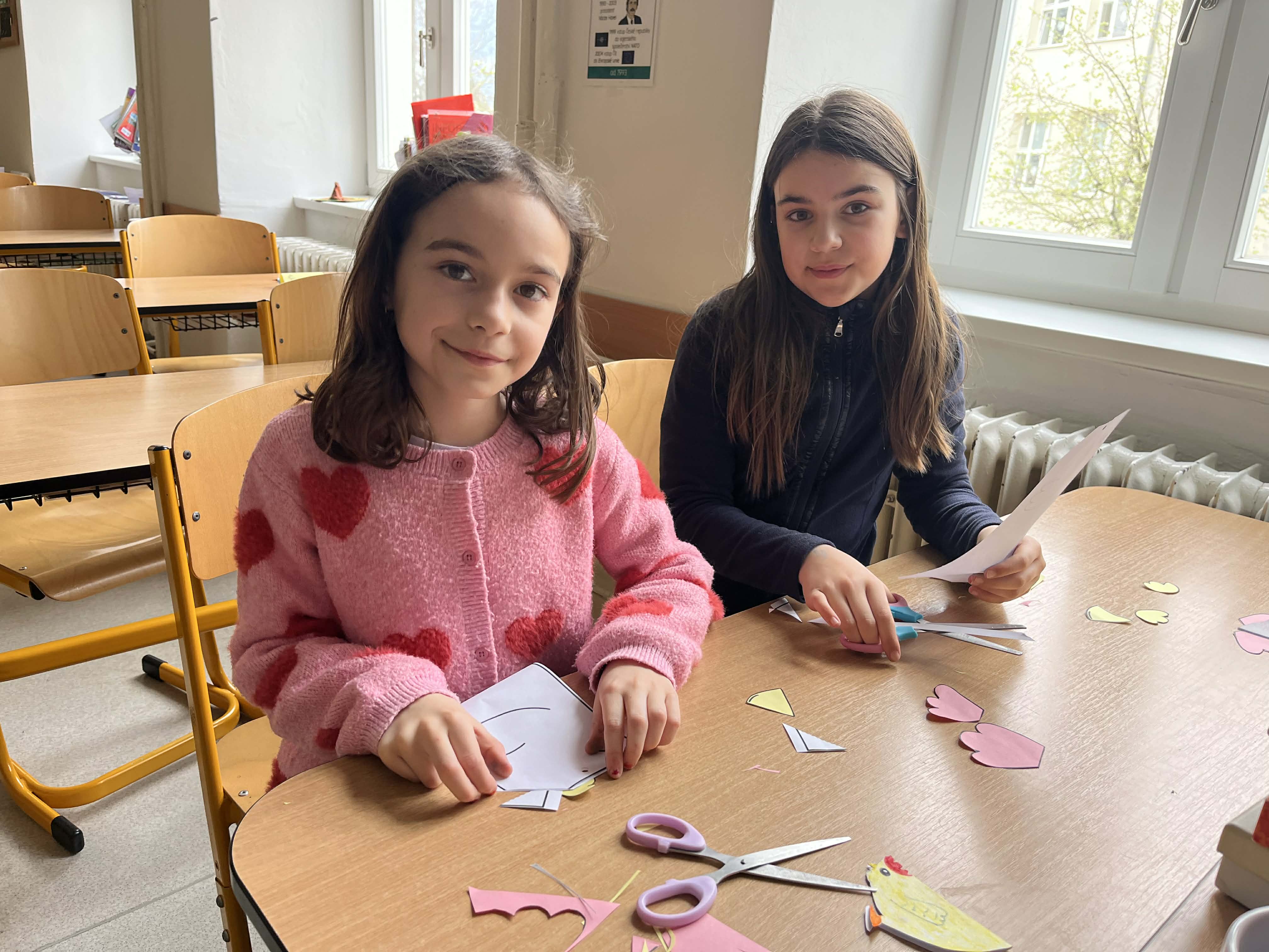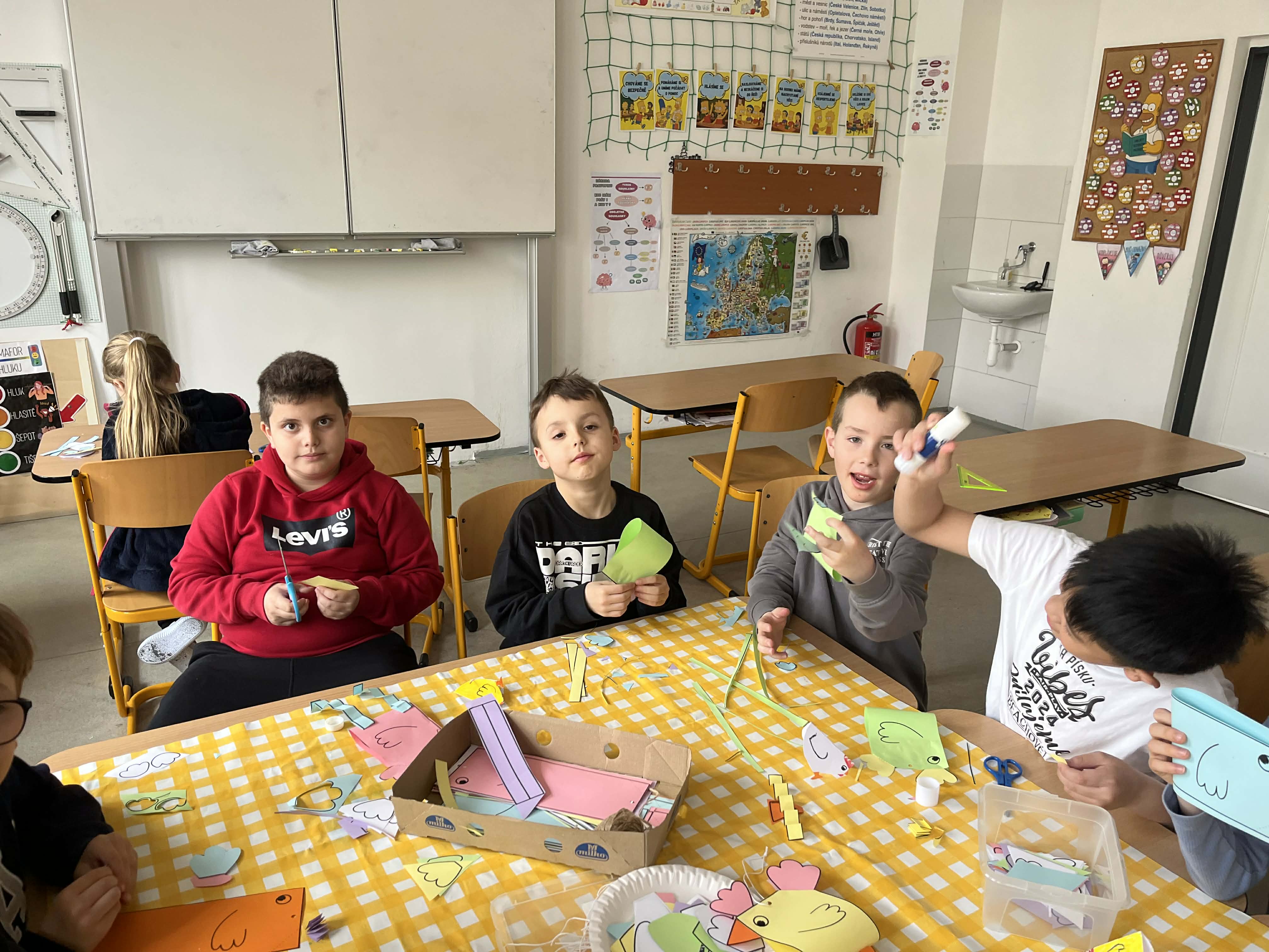Děti si vyzkoušely různé aktivity, při nichž vyráběly přáníčka, slepičku na zavěšení a kuřátko z papíru.