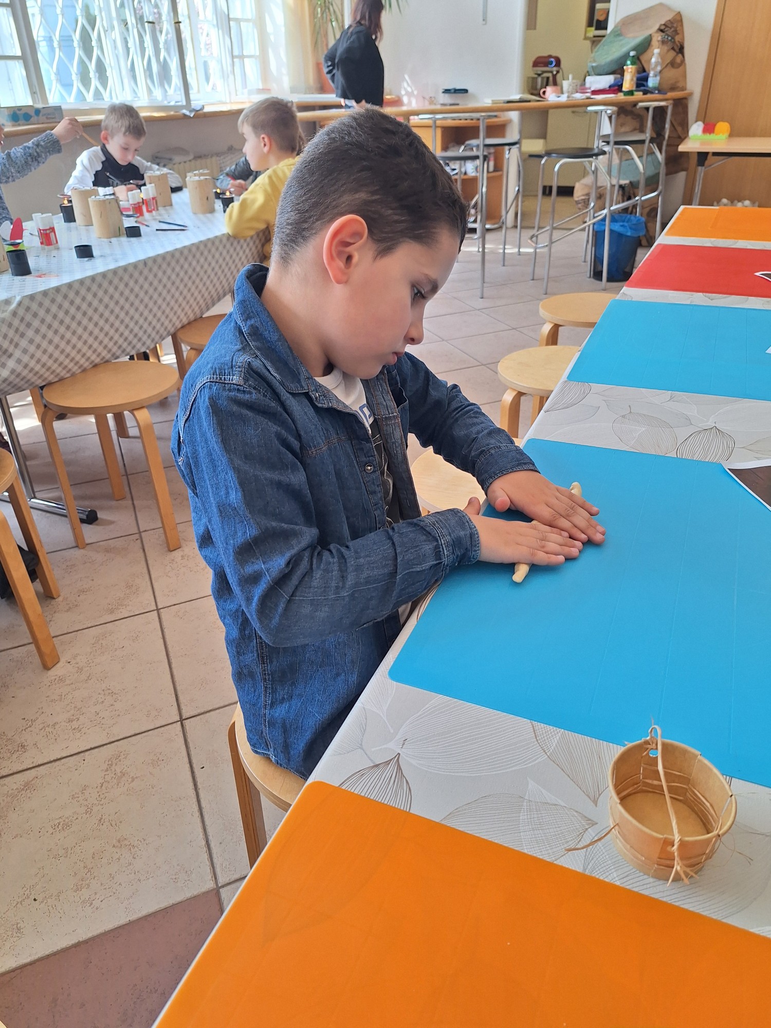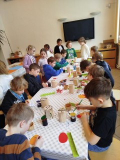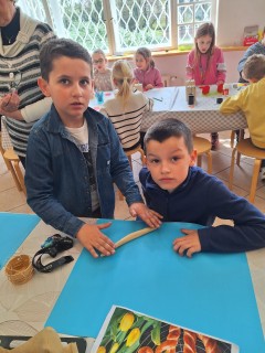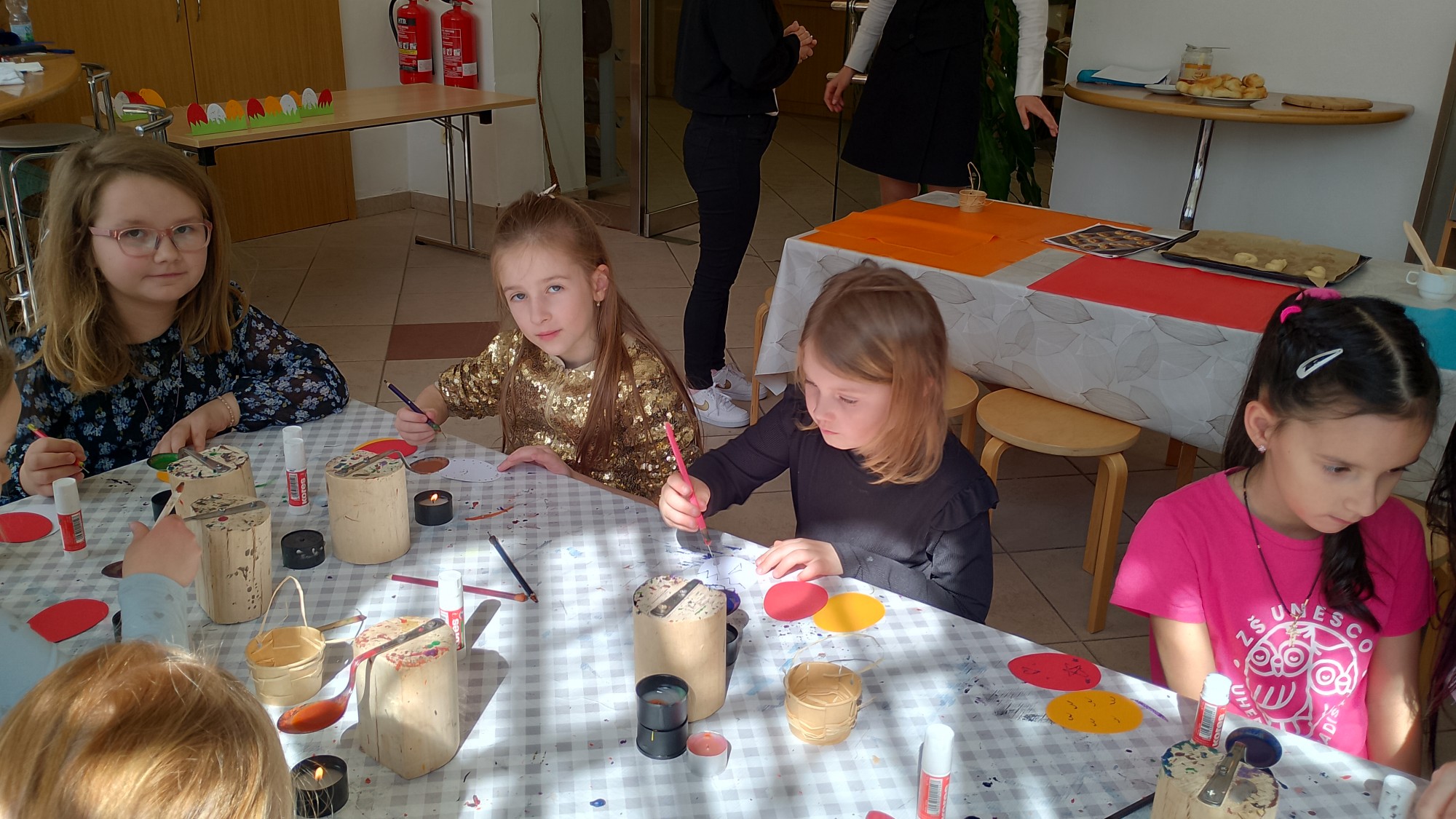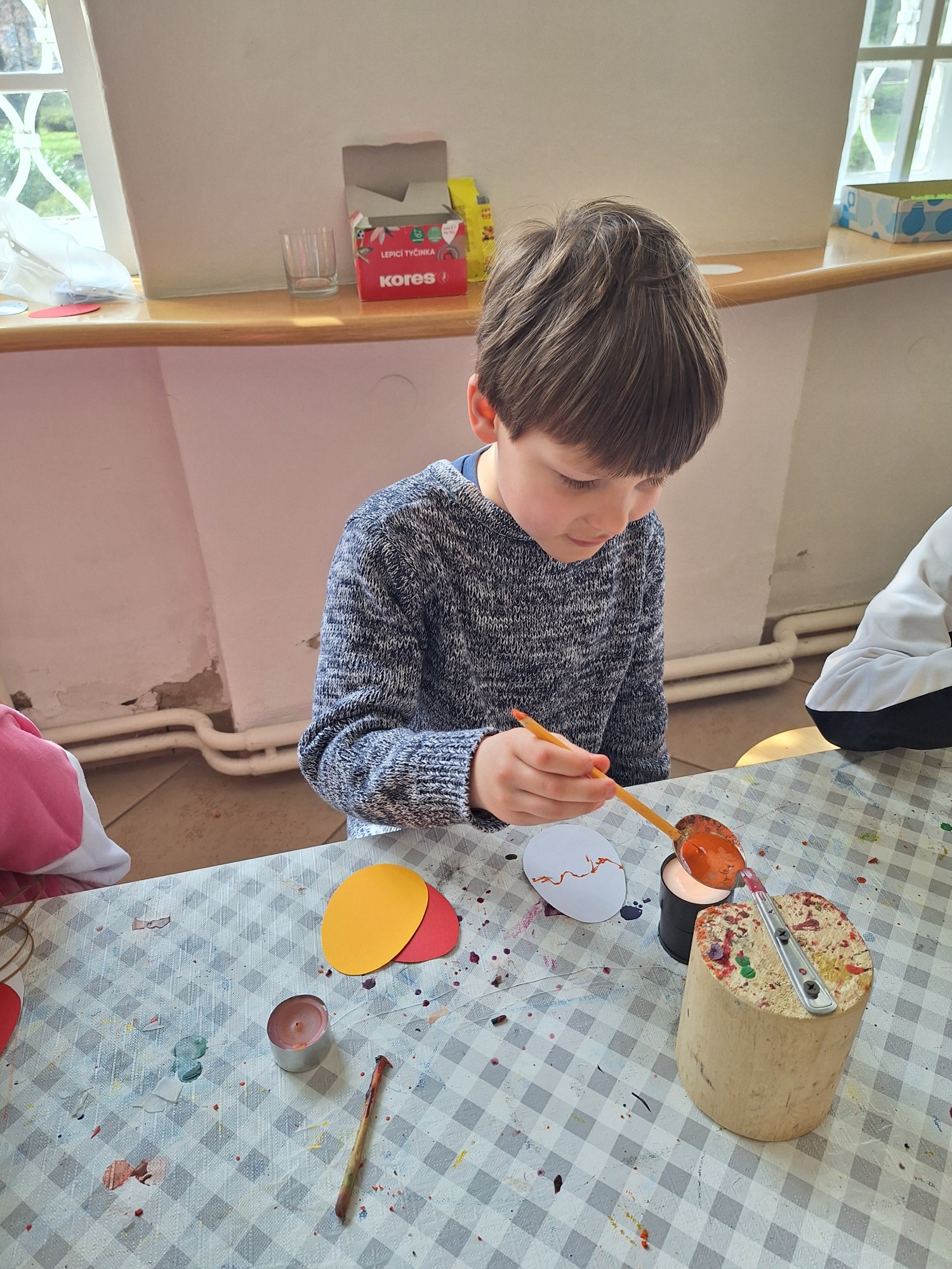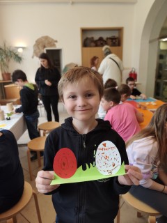 Jako každý rok, tak i letos Slovácké muzeum v Uh. Hradišti uspořádalo Velikonoční tvořivé dílničky. Děti si mohly upéct jidáše, potom si vyrobily papírový košíček s lýkem. První se navnadily u paní, která zdobila vajíčka roztopeným voskem, tak si udělaly své vlastní papírové vajíčko taky voskem. Potom se mohly podívat jak se plete pomlázka nebo vyrábí různé ozdoby ze šustí.