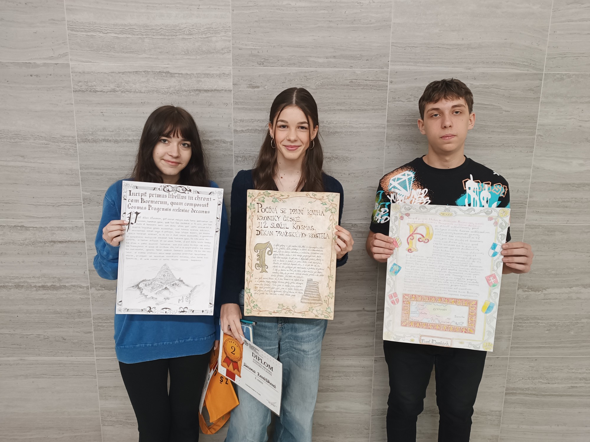 V letošním školním roce si naše škola připomíná výročí úmrtí významného českého kronikáře Kosmy. V rámci předmětu český jazyk žáci dostali netradiční, ale velmi zajímavý úkol, a to zpracovat první stranu Kosmovy kroniky. Celá práce musela být vyhotovena ručně a mnozí žáci si tak uvědomili, jak náročná byla práce středověkých kronikářů.