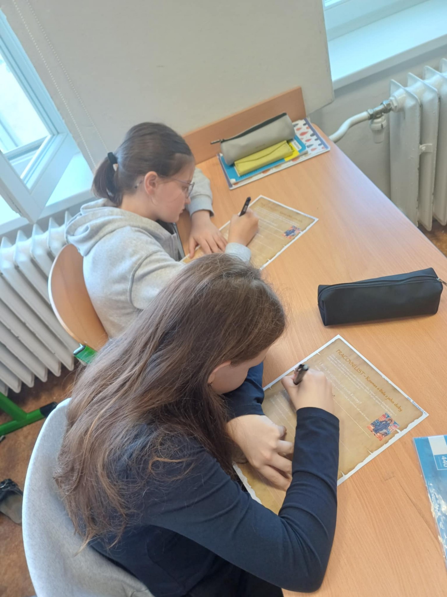 V hodině matematiky se žáci třídy 6.C pustili do netradičního úkolu – pracovali na speciálně vytvořených pracovních listech, které spojovaly svět čísel s historií. Tématem bylo 900 let od smrti kronikáře Kosmy, významné osobnosti českých dějin.