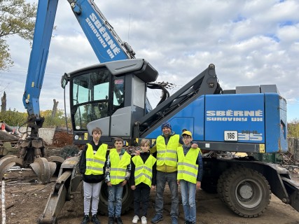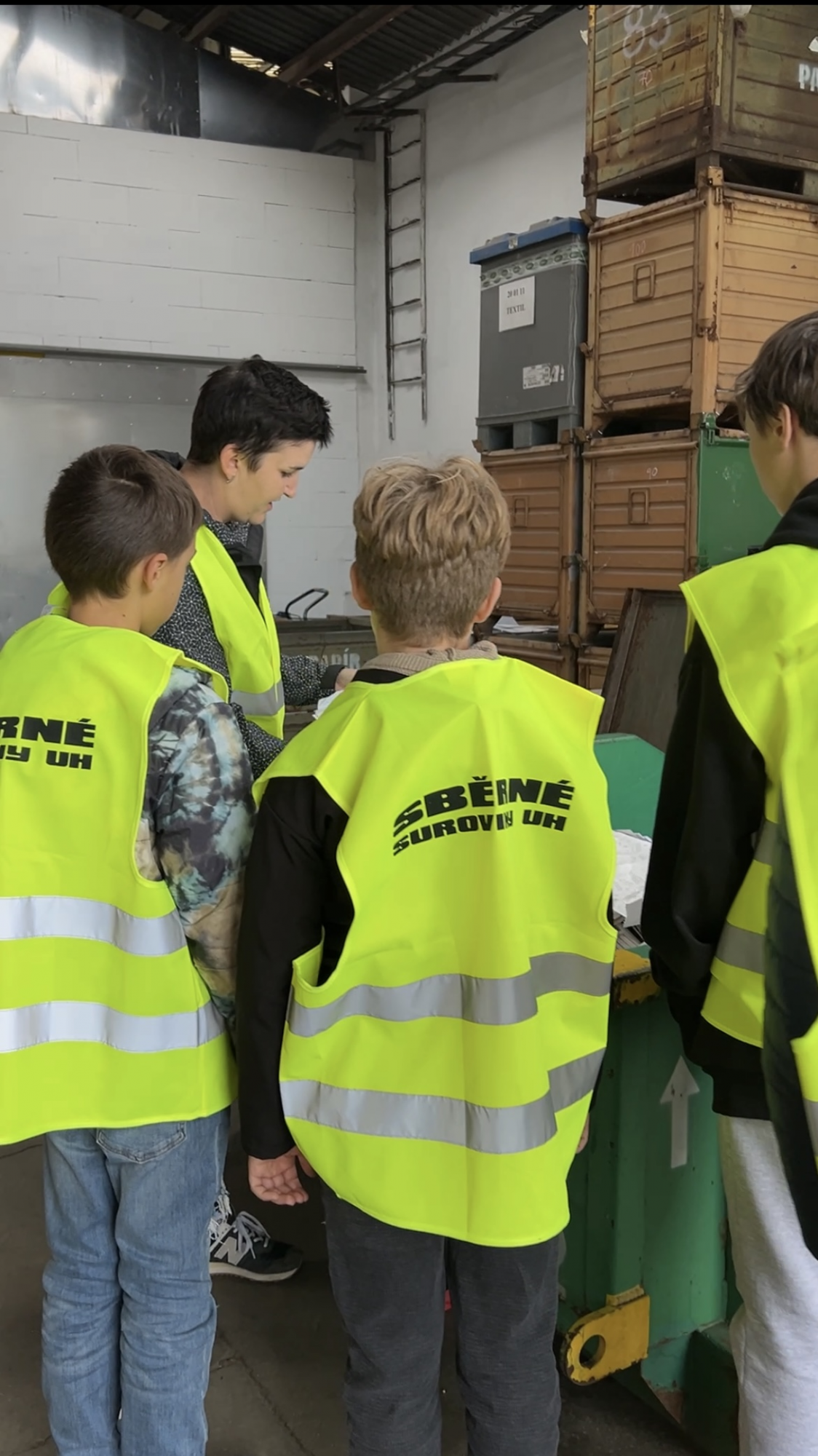 Dne 16. října navštívili žáci badatelského kroužku historie areál Sběrných surovin v Uherském Hradišti. Během exkurze se seznámili s tím, jak probíhá třídění a zpracování odpadu a jaký význam má recyklace pro životní prostředí. Zajímavý výklad a ukázky z praxe jim poskytly průvodkyně Kateřina Víchová a Barbora Bartůnková. Žáci měli možnost nahlédnout i do zákulisí provozu, kam se běžně veřejnost nedostane. Děkujeme Sběrným surovinám i průvodkyním za ochotné a poutavé představení celého procesu. Exkurze byla pro všechny velmi přínosná.