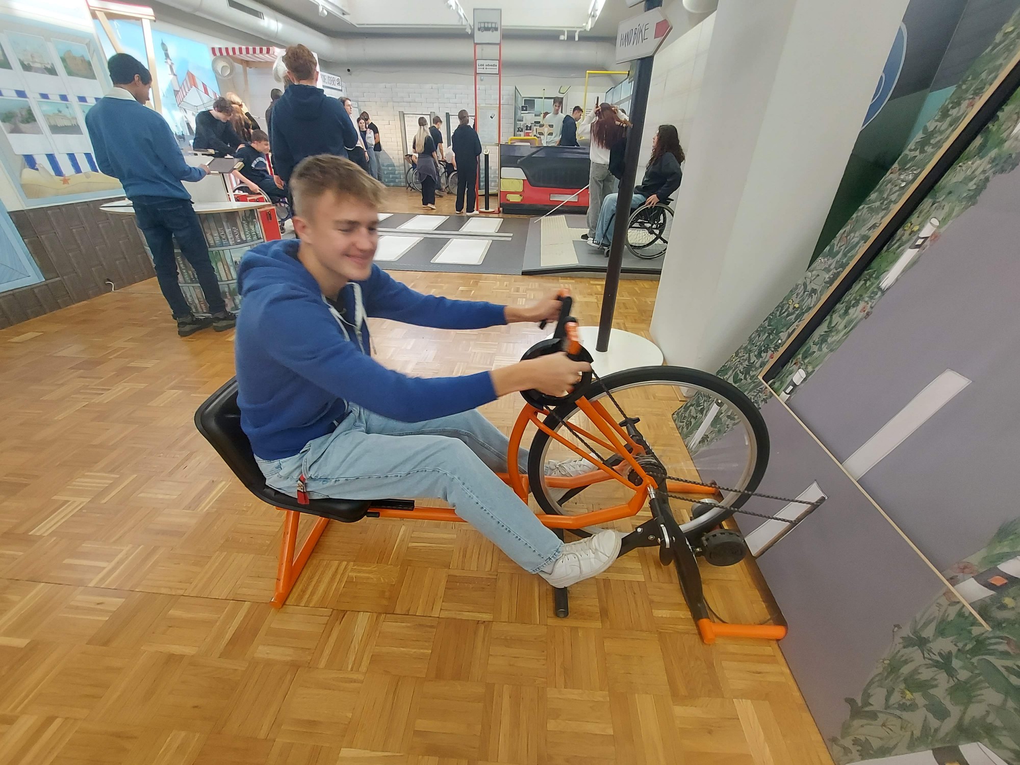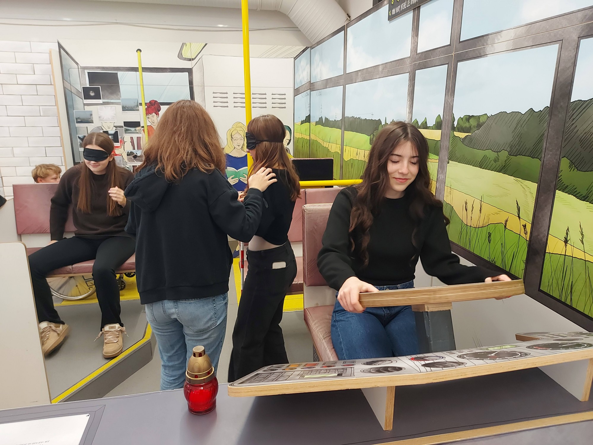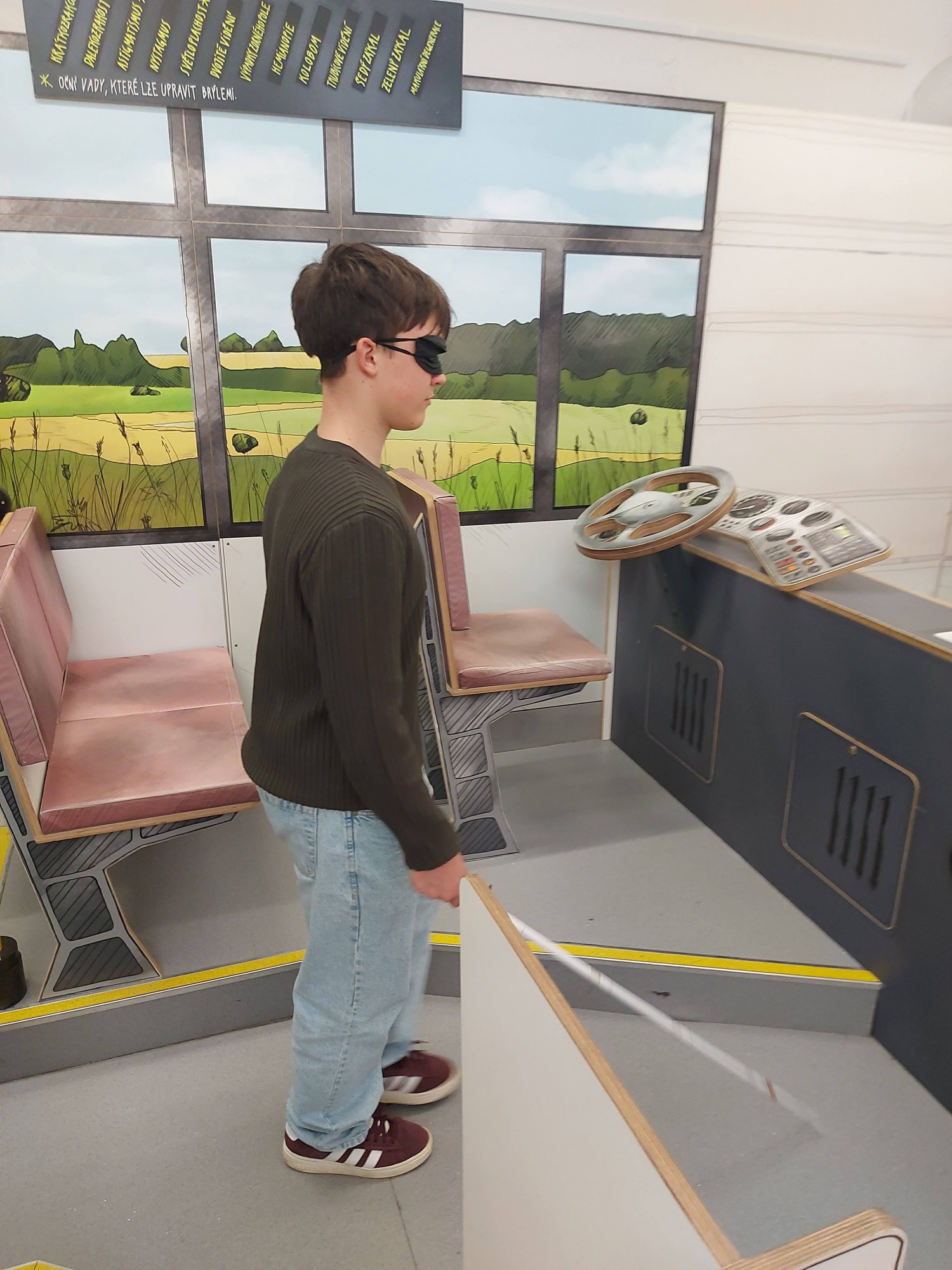 Podtitul výstavy „neobvyklý výlet do světa lidí s hendikepem“ přesně vystihuje, co návštěvníky čeká. Vypraví se na skutečný výlet: od přípravy na cestu, přes orientaci v terénu a použití dopravního prostředku, až po sdílení zážitků z cest. V expozici proto nechybí například model autobusu nebo temný tunel znesnadňující orientaci.