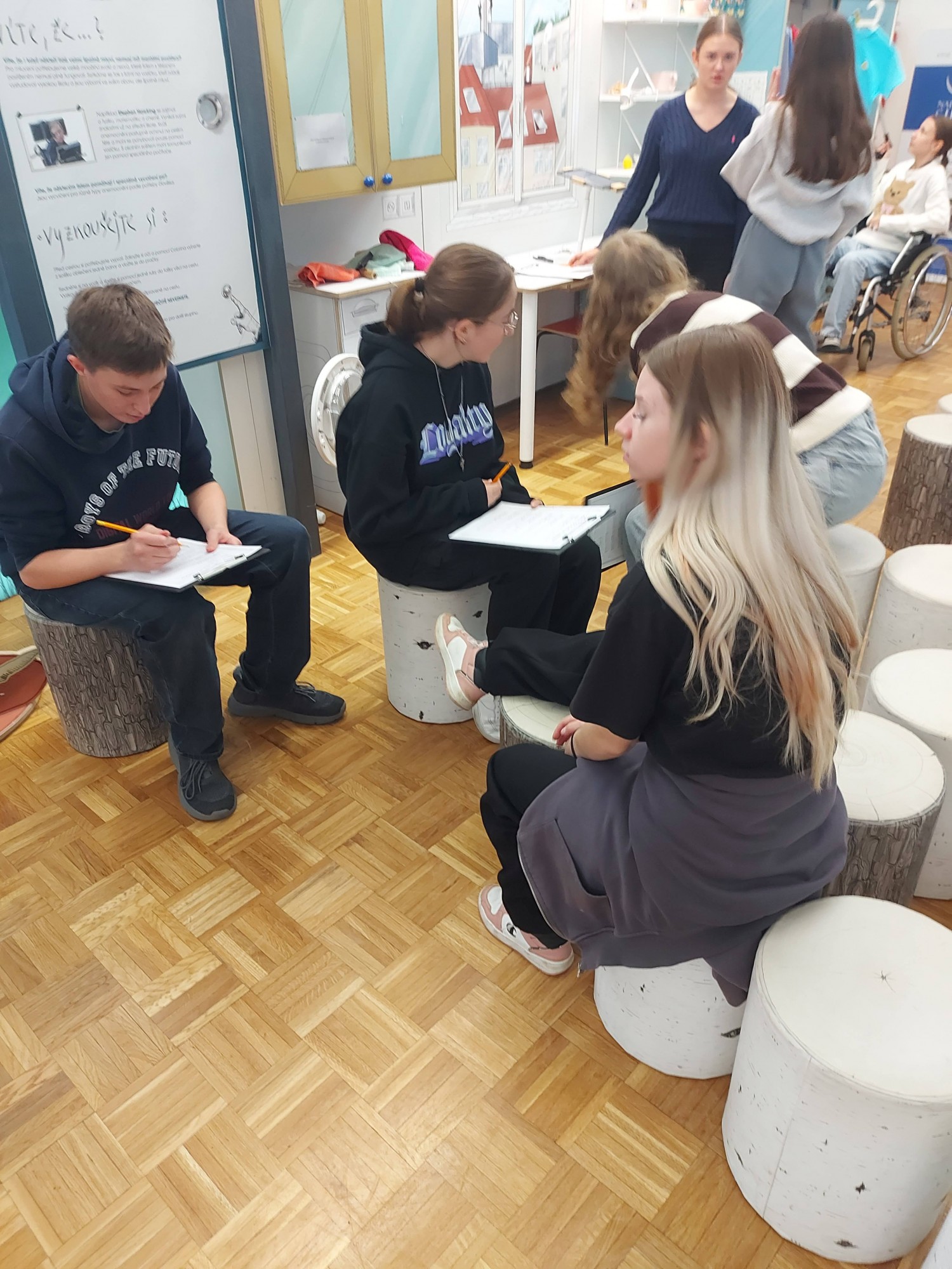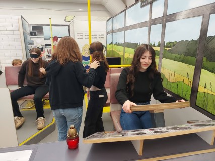 Žáci devátých tříd a badatelského kroužku-historie navštívili během měsíce října výstavu Lidé od vedle ve Slováckém muzeu.