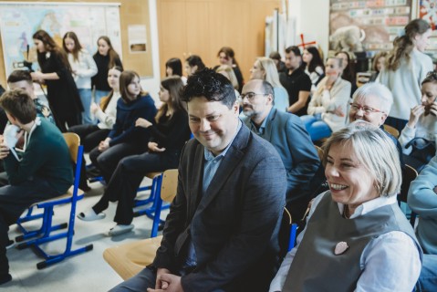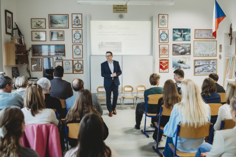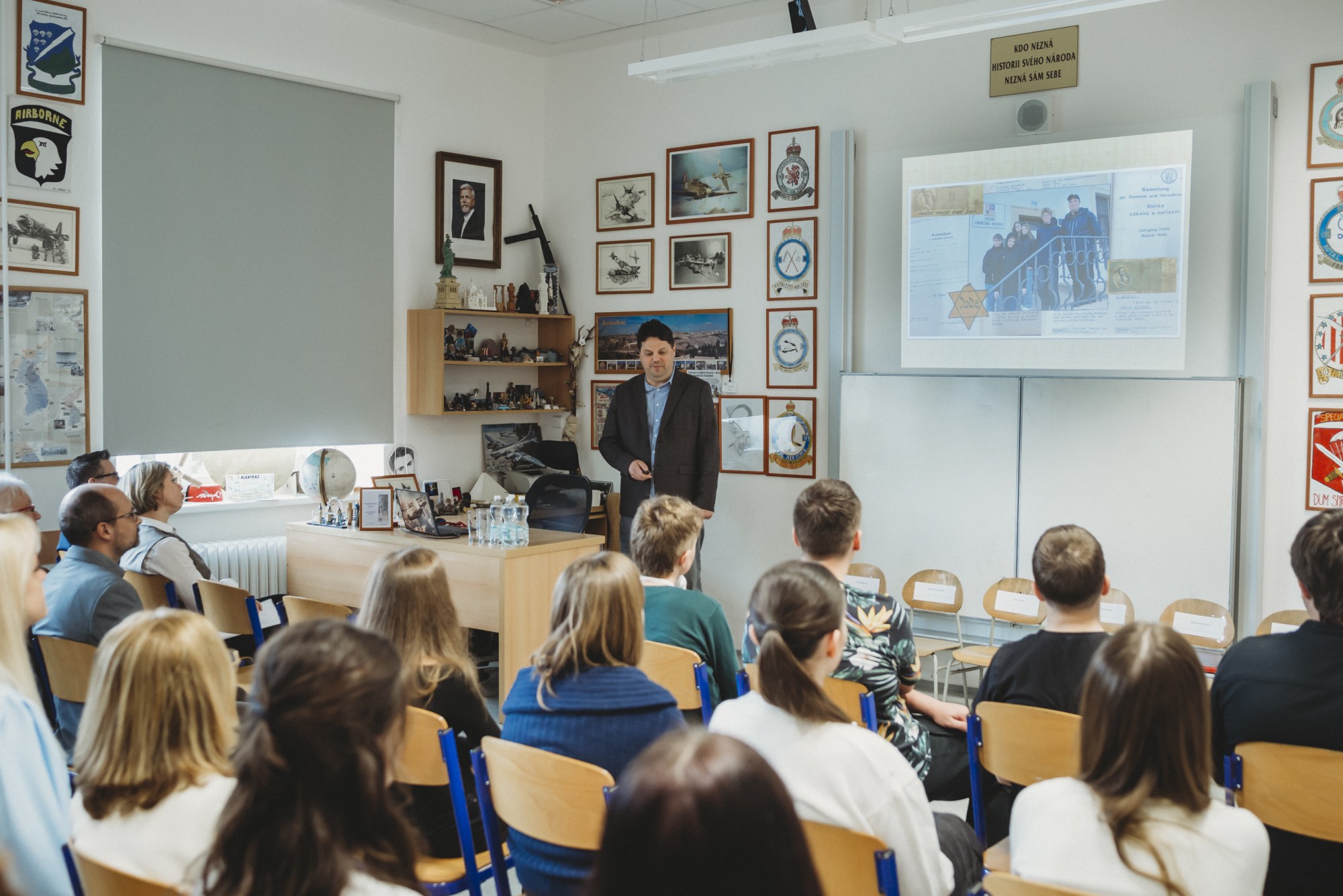 Významným hostem byl také ředitel Státního okresního archivu v Uherském Hradišti Mgr. Lukáš Čoupek, Ph.D., který měl pro účastníky připravenou odbornou prezentaci o historii židovské komunity v Uherském Hradišti. Představil také první archivní dokumenty, které pomohly identifikovat devět bývalých žáků naší školy, jimž byl v roce 1940 zakázán přístup ke vzdělání a kteří byli později deportováni do Terezína a následně do vyhlazovacích táborů.