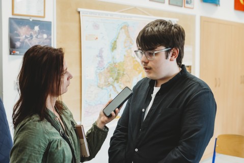 Rozhovor jim poskytli dva z aktivně zapojených žáků projektu, Roman Abrhám a Viola Gregorová, kteří popsali, proč se do projektu přihlásili a co pro ně práce s autentickými historickými materiály znamená. Oba patří mezi šest žáků třídy 8.C, kteří se projektu účastní. Podrobnější informace poskytli také realizátoři projektu Mgr. Jan Vorba, Mgr. Petr Kočíř a Mgr. Lukáš Čoupek Ph.D.